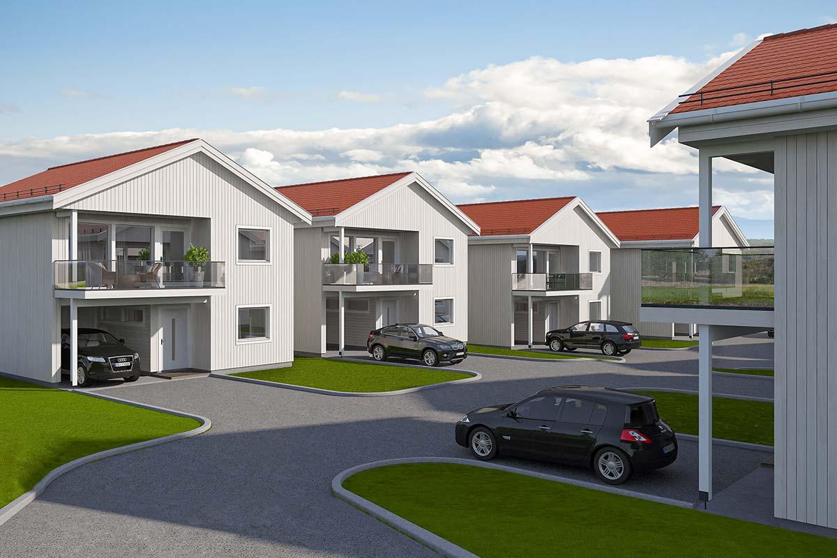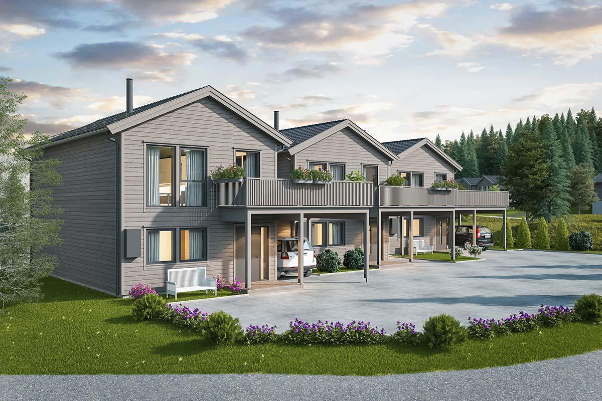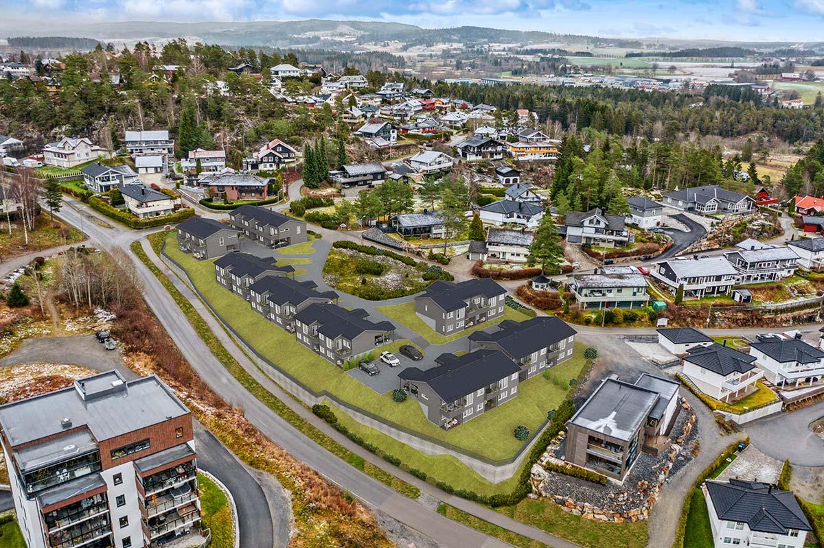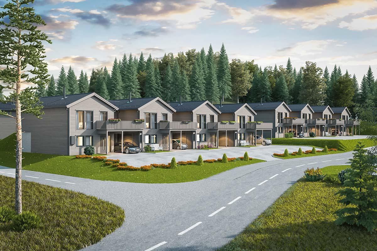 17 eneboliger i rekke i Mysen, Indre Østfold kommune.