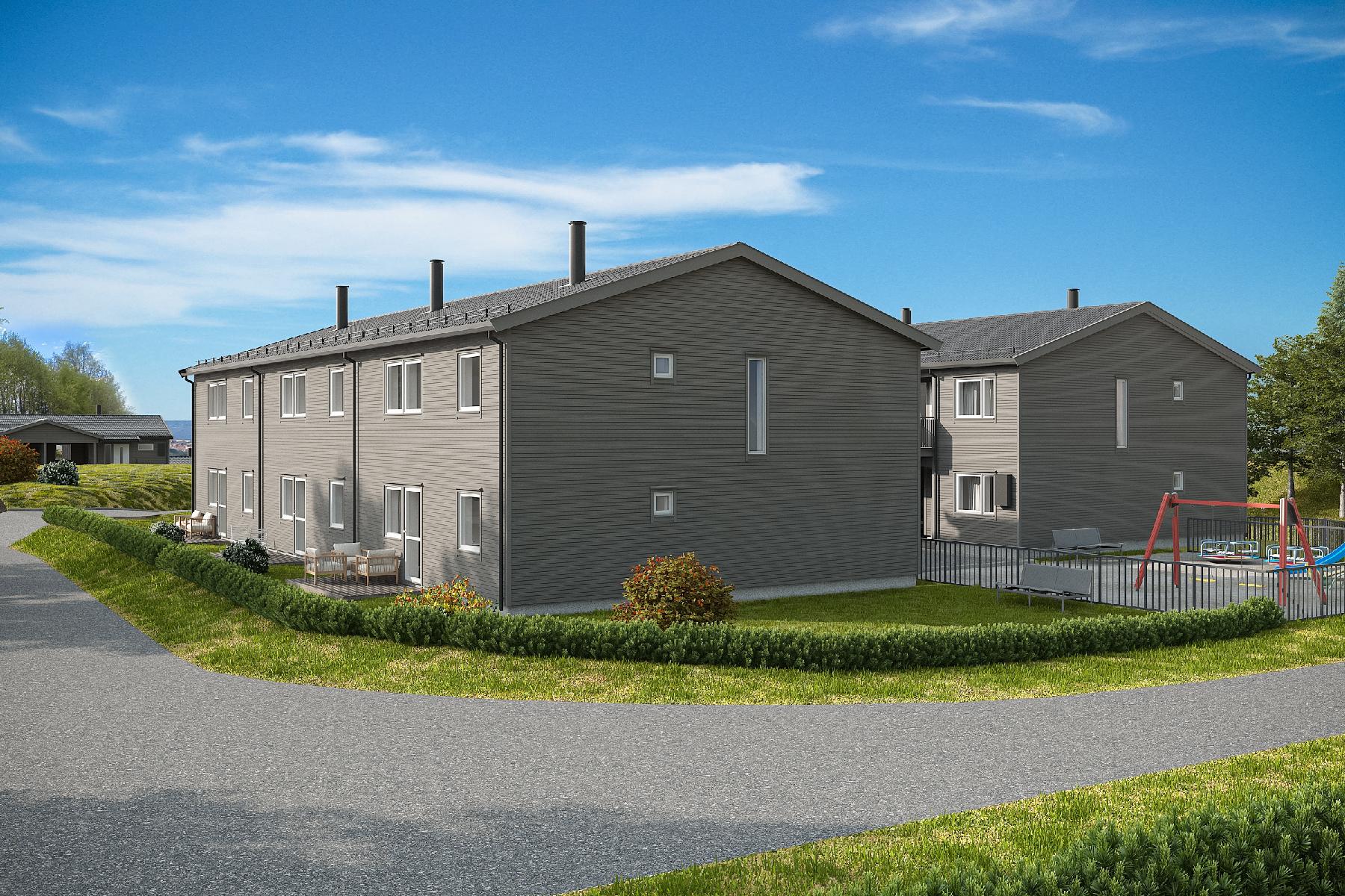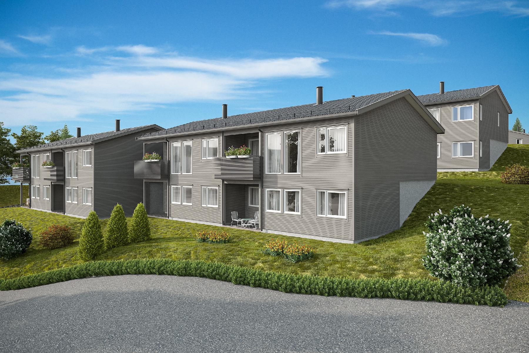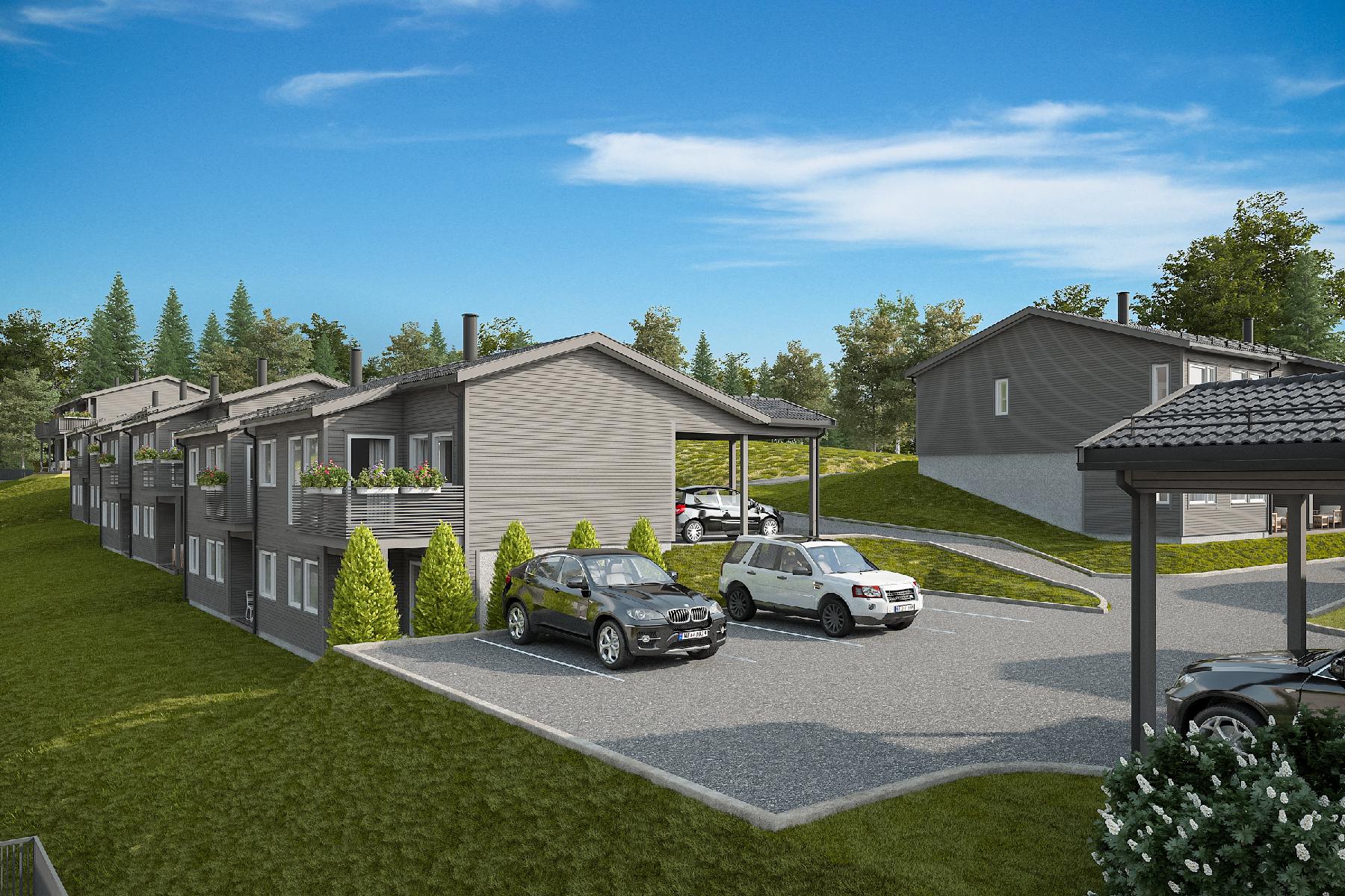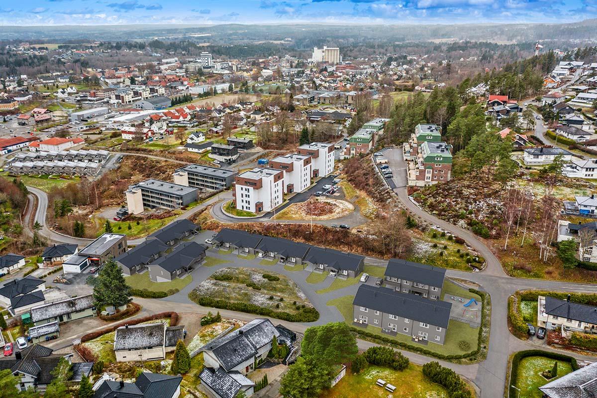 17 eneboliger i rekke i Mysen, Indre Østfold kommune.